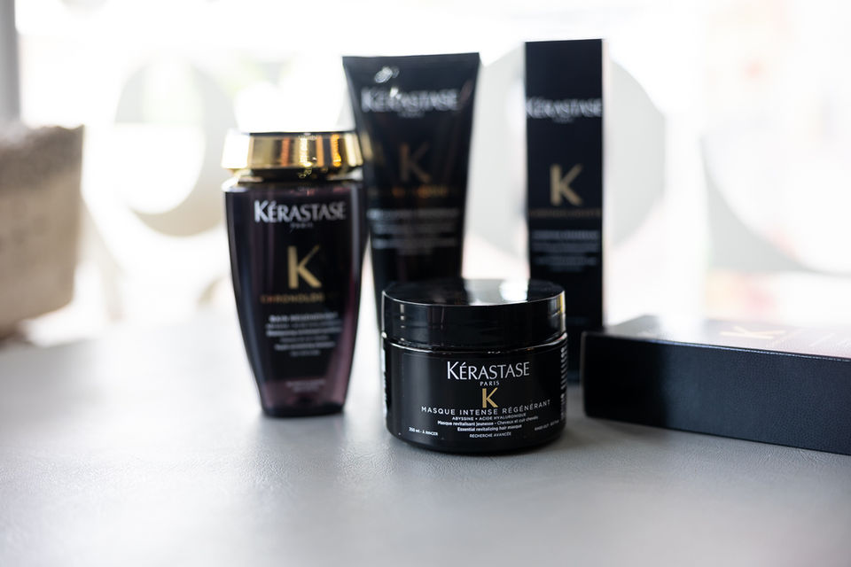 In studio, we use Loreal Professional colours to provide you with a high quality, long lasting colour. At the spa area, we use Kerastase exclusively, with their wide range of shampoos, conditioners, treatments, and salon exclusive hair care rituals. in styling we also use Sebastian products to support hair styling in the home.